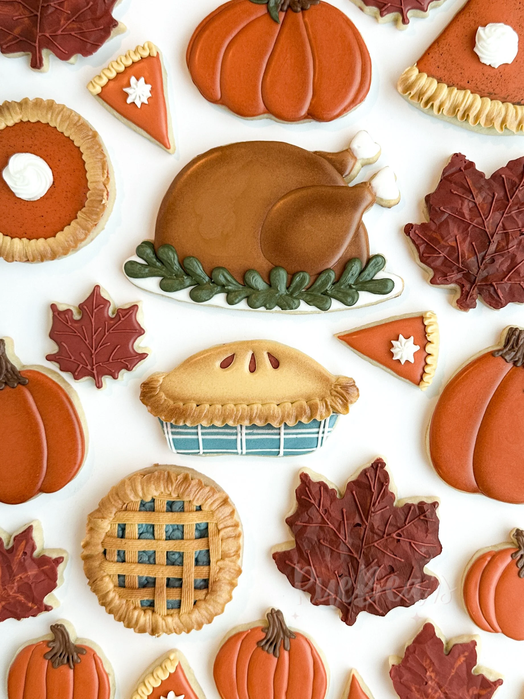Each dozen includes a mix of festive Thanksgiving designs. Have a special request like “no ‘thankful’ cookies” or “I’d love a pumpkin pie one!”? Just email us at hello@ruebeas.com, and we’ll do our best to accommodate!